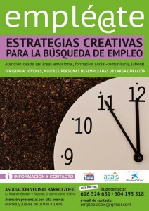 Un año más, desarrollamos nuestro espacio de Orientación Sociolaboral y Emprendimiento. Actualmente está en proceso «Empleaté, estrategias creativas para la búsqueda de empleo«, un proyecto de atención integral a las personas en situación de desempleo y precariedad laboral, que tienen perfiles de vulnerabilidad social y se encuentran con posibles consecuencias de pobreza y exclusión social, dirigido a la inserción socio-laboral de las mismas.